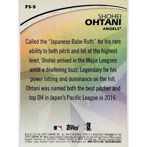 2018 TOPPS "FUTURE STARS" #FS-5 SHOHEI OHTANI ROOKIE BASEBALL CARD!