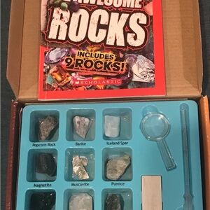 This educational toy includes 9 samples of real special rocks along with an educational book about different rocks and their formation.
