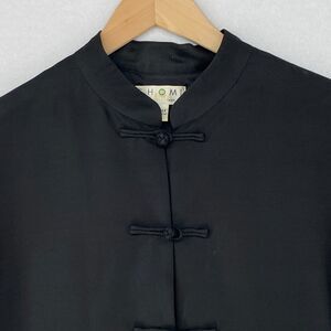 SHOMI BY MILLER SHOR Shirt Womens 12 Silk Mandarin Knot Button Traditional Black