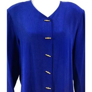 SHOMI By Miller Shop 2 Pc Skirt Tunic Set Silk Size 16 Cobalt Blue Gold Buttons