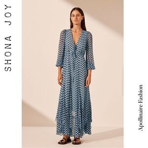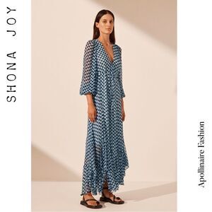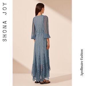 SHONA JOY ELINA DRAWSTRING MAXI DRESS IN NAVY ON BLUE SIZE 8 NWT