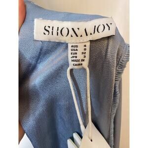 SHONA JOY La Lune Twist Front Cut Out Mini Dress Blue Silk Dress US 0