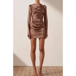 SHONA JOY 'Lily' Long Sleeve Ruched Mini Dress in Clove NWT $295 US 6