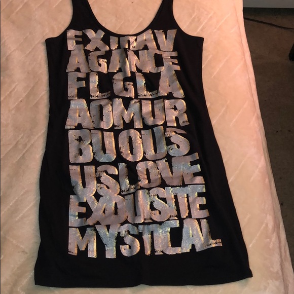 Super cute short dress with words written across. Never worn.