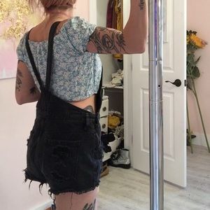 Black jean short overalls!! I wear a 27 and these are a little big on me I think would fit a 28-29 best !! Got these in Portland Oregon :~)