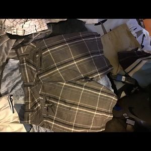 BURNSIDE SHORTS GREY WITH WHITE ,BLACK,DESIGNS, SIZE 36...GREAT SHORTS $45