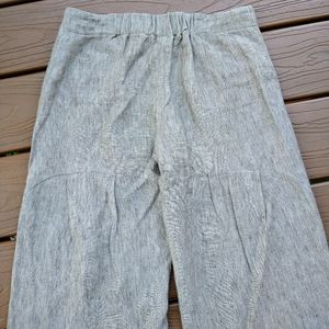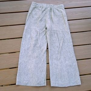 Gorgeous Belgian linen cropped pants from Shosh New York. Heathered light brown, a little darker than most of these pictures... closest in the last picture. Side zip closure, faux front pockets. Elasticized back waist. Tagged as a "1", which is a S in Shosh. Please compare the measurements below with non-stretch pants you have at home that fit well. Excellent condition!