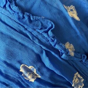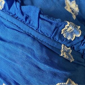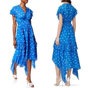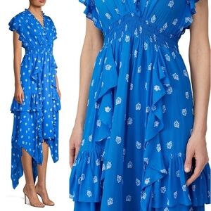 SHOSHANNA Cobalt Floral Embroidered Asymmetric Hem Ruffle Tier Maxi Dress 14