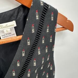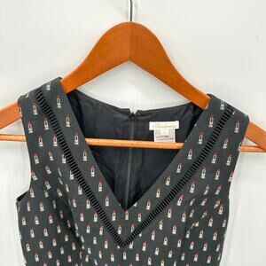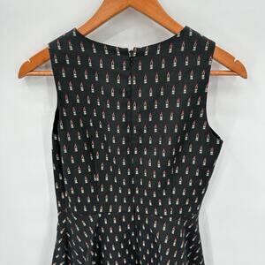SHOSHANNA Elvira V-Neck Fit & Flare Black Red Lipstick Print Dress // 2