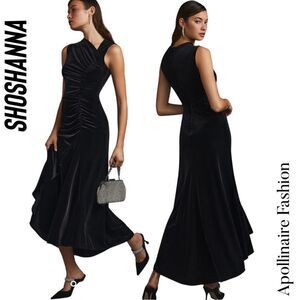 SHOSHANNA FOR ANTHROPOLOGIE RUCHED ASYMMETRICAL BLACK VELVET GOWN NWT SIZE 8