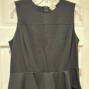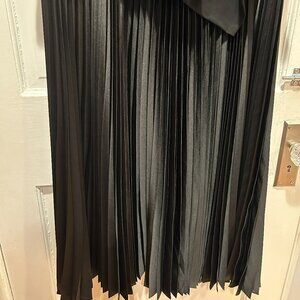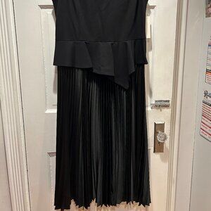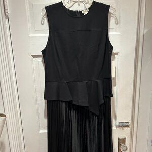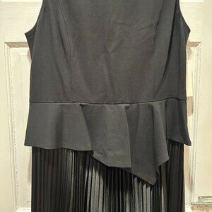 Get ready for the Holidays. Beautiful sleeveless top with graduated fluted peplum at waist. Shell top is made of rayon, nylon, and spandex. Flowy skirt is satin-look accordion pleat. Full hidden zipper in the back. Shoulder to waist 17". Peplum adds another 5-8 inches. Skirt waist to hem is 32". Waist across is 17". P2P is 20". Rounded neckline. BRAND NEW. NEVER WORN. NWT. SIZE 14