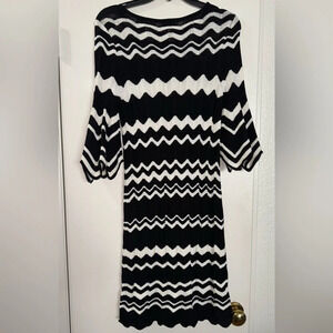NWOT Shoshanna Black & White Chevron Print Midi Sweater Dress With Bell Sleeve gives off major Missoni vibes.