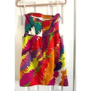 SHOSHANNA Silk-Blend Multicolor Abstract Splash Print Strapless Tulip Dress - XS