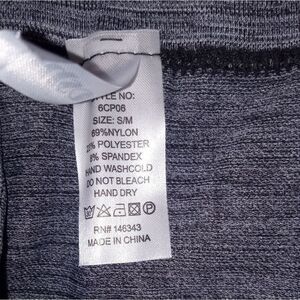 Black, gray & white color mix, wide waistband, polyester/spandex blend, great stretch, measures 27 inches long, NWOT