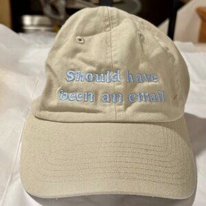American needle cap with blue "Should have been an email" embroidery. Slight discoloration on inner brim; otherwise like new!