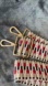 Stylish bag or tote or guitar strap featuring a bold red and black pattern. Accented with elegant gold hardware.