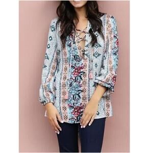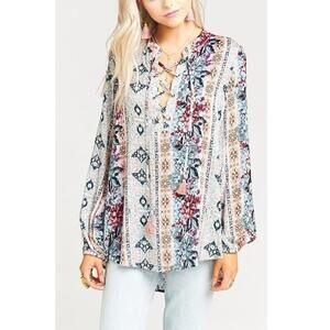 SHOW ME YOUR MUMU $146 Thatcher Tie Top Lace-Up Neck in Wildflower Small