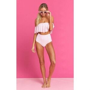 💕SHOW ME YOUR MUMU💕 Barbie Ruffle Bikini TOP Skipper Stripe Pink & White S NWT