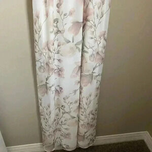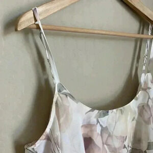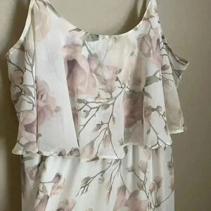 Features: This flirty, floaty gown has a ruffled bodice overlay with drapey sides that can also be worn as fluttery sleeves. The elegantly simple A-line style flatters a variety of figures. Slips on over head, adjustable straps, scooped neck, elastic at waist, floor-length A-line skirt, fully lined