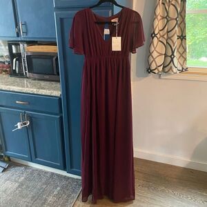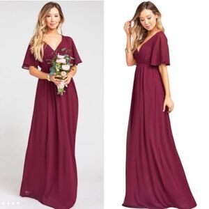 SHOW ME YOUR MUMU Emily Empire Maxi Dress in Merlot Chiffon Burgundy Small NWT