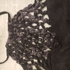 Knot your average bikini. The Himalayan Top is everything you need for stylish adventure. Looks perfect with high rise denim shorts or a splash of saltwater for your latest adventure.The macrame is hand-knotted, this is no ordinary swimsuit. Knotty or nice, this bikini goes both ways. Pair with a summer sweater and fringe booties for a desert pool day, or add a lime and some coconut and mix it up at the beach. The Shoreline bottom has the perfect amount of coverage, with soft hand-knotted fabric macramed at the sides it won't squeeze. The suede-look fabric is made specially for swimming with xtra life lyra, inside and out. It will last forever like those long summer nights. The suit is fully lined in the same suede-look fabric on the outside, it has clean finished hems and no cups or padding and a tie at the back neck.