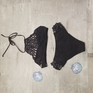💕SHOW ME YOUR MUMU💕 Himalayan High Neck Top + Shoreline Macrame Bottom Black M
