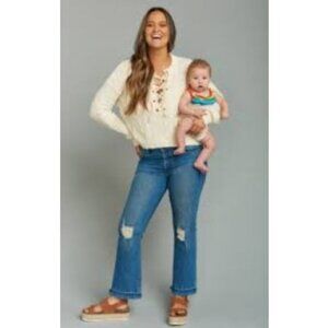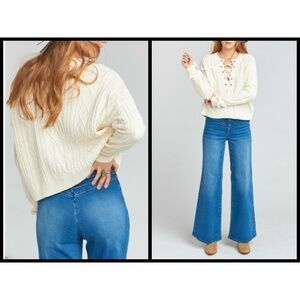 💕SHOW ME YOUR MUMU💕 Joey Lace Up Sweater Snowflake Cable Knit Soft White S NWT