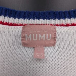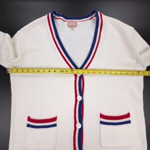 SHOW ME YOUR MUMU Lambert Cardigan White Varsity USA Stripe Preppy Academia Y2k