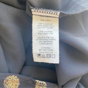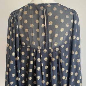 SHOW ME YOUR MUMU Long Sleeve Black Top Gold Polka Dot Bishop Sleeves Size M
