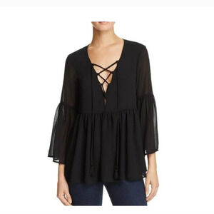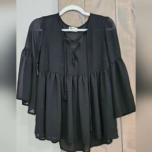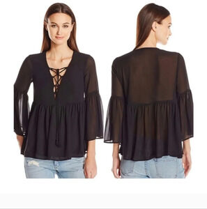 SHOW ME YOUR MUMU Poet tie Boho 3/4 Sleeves top sheer black. Size XS