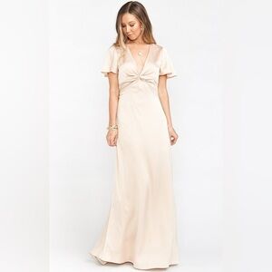 SHOW ME YOUR MUMU Rime Twist Gown In Champagne Luxe Satin