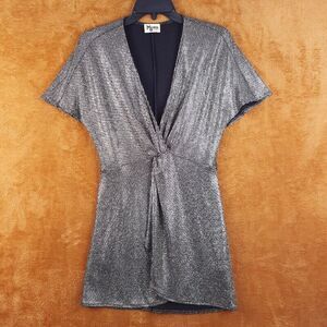 SHOW ME YOUR MUMU Womens Dress XS Silver Shift Get Twisted Mini Disco Glitz