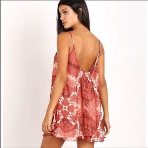 Super cute trapeze mini dress by Show Me Your MuMu!! The print is Happy Henna - pink and red medallion style design. Adjustable straps. Scoopneck. Lined. NWT!! Size X-Small (XSmall, xs, extra small).