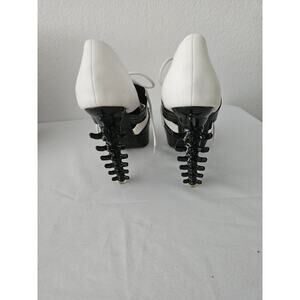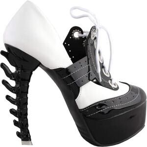 SHOW STORY Retro Black White Two Tone Lace-Up Gladiator Platform Bone Heels Shoes.