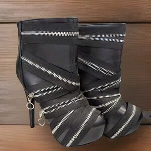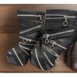 SHOW STORY WOMEN'S BLACK ZIPPER CLOSE TOE HEEL PLATFORM SZ 6 1/2 37