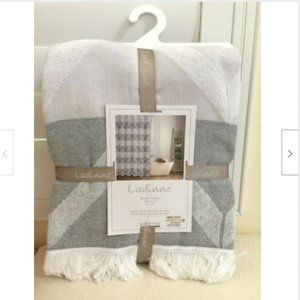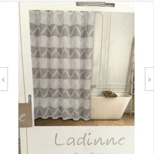 Introducing a breathtaking Ladinne Turkish 100% Cotton Weave Embossed Shower Curtain with fringes at the end, Strips and Geometric "V" shaped pattern in Grey/White color. Plush and super soft, I highly recommended this item! Size: 72" W x 72" L, 183cm x 183cm 100 % Egyptian Cotton Color: Grey/White Made in Turkey