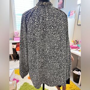 ✔️SHOW ME YOUR MUMU Black White Monochrome Pattern Ruffle Collar Blouse Sm Med