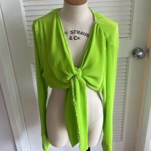 SHOWPO ELOWEN PLISSE LONG SLEEVE TIE FRONT TOP IN LIME