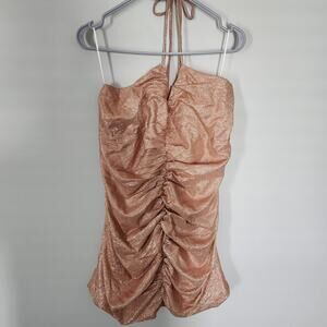 SHOWPO Nanathel Ruched Halter Mini Dress in metallic twill. Women's plus size 16. New with tags!