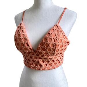 SHOWPO. Pink Plunging Boho Knit Lace Padded Bralette Size 10 / Large