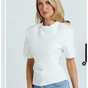 Crisp white short-sleeve tee with a clean crew neckline. Structured yet soft fabrication for a neat silhouette. Pairs easily with denim or tailored bottoms. Minimal, versatile design for everyday wear. Trusted seller.