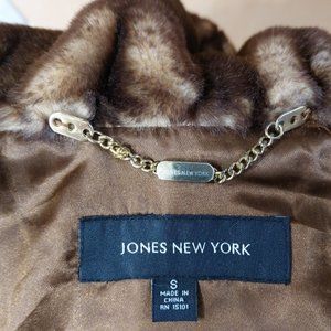 Strikingly beautiful, one-of-a-kind statement piece from Jones New York with a vintage 1940s-inspired tiered, babydoll silhouette! One of those luxurious timeless fashion pieces that are easy to throw over anything, and look fabulous! It comes in gorgeous Whiskey (looks like Honey Brown). Made from outstanding quality faux fur that has a look and incredible feel of a genuine Mink (modacrylic/polyester). Designed with a chic lantern style sleeve, pleated paneled swing construction, one button closure at the neckline, front hook & loop closure, cozy side slit pockets, smooth satin lining (100% polyester), and STUNNING 8" ruched shawl collar and cuffs that add so much personality and unique style to this piece. Warm, comfy, and surprisingly versatile. It will look equally fabulous with leather pants/ distressed denim skinnies, as it is over a formal dress/skirt. Approx measurements: Pit to pit 2o.5", Collar 8", Sleeve 25", Length 33". Retail $340.00. Was purchased from Macy's. Come from a clean, smoke-free home.