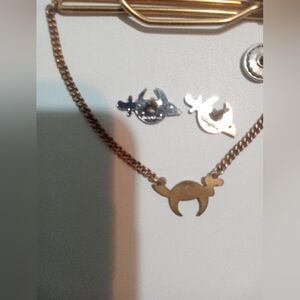 The tie clip measures 3" and the pendant measures 1/2" x 1/2". The cap/hat pins measure approximately 3/4" x 3/4".