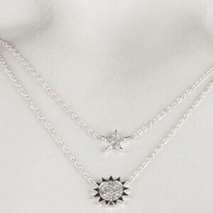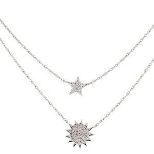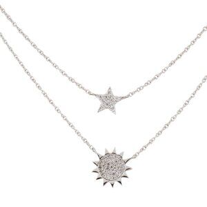 SHY CREATION 14K WHITE GOLD DIAMOND SUN & STAR LAYERED NECKLACE