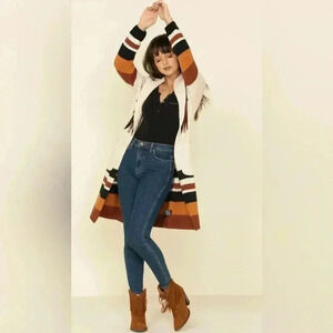 SHYANNE WOMEN'S SOUTHWESTERN STRIPED DUSTER CARDIGAN Medium Boho