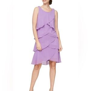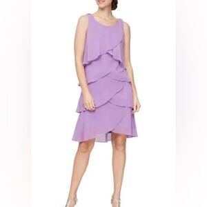 SI Fashions Tiered Chiffon Dress Party Formal Ruffled Sleeveless Purple Amethyst