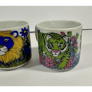 SI Japan Coffee Cup Mugs Tiger Lion Water Buffalo Animals Vintage Retro Drink