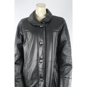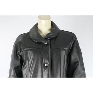 SIBYLLE LYN Black Leather Long Sleeve Button Long Coat Size M