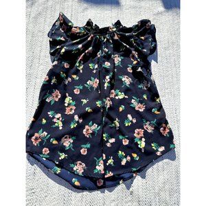SIENNA Sky Blouse Small Blue Floral Ruffle keyhole front back Cap Sleeve Top Flowy Womens