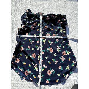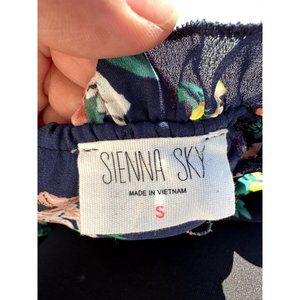 SIENNA Sky Blouse Small Blue Floral Ruffle keyhole Cap Sleeve Top Flowy Womens